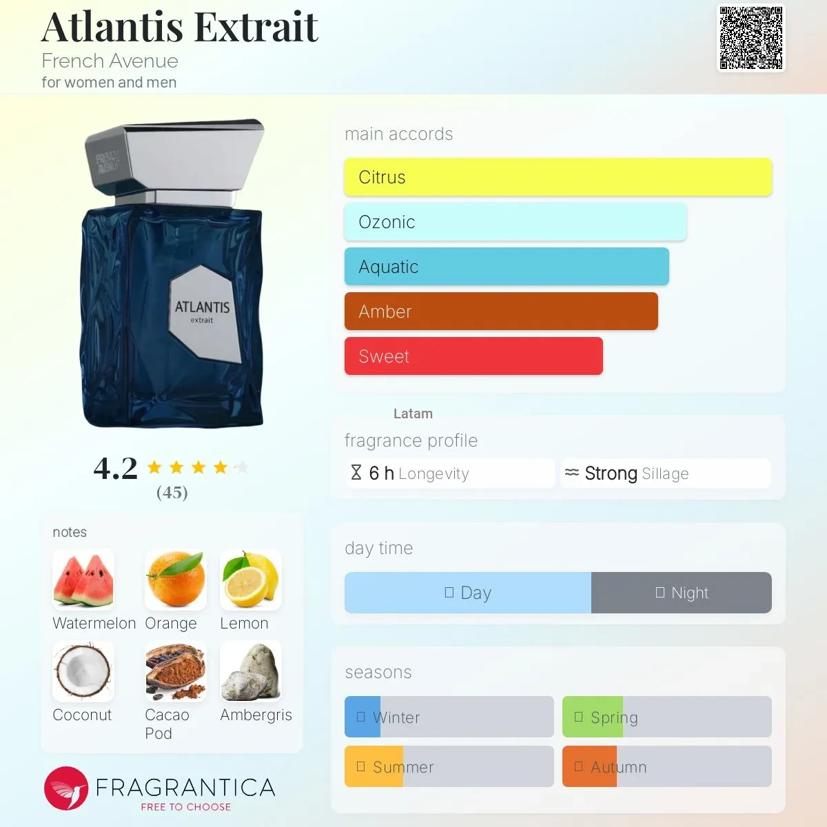 En Latam Fragrances seleccionamos fragancias auténticas que destacan por su calidad y rendimiento. Atlantis Perfume Extract by French Avenue 100 ml es ideal para quienes buscan un perfume duradero, fresco y sofisticado, con una esencia que proyecta elegancia, energía y una presencia inolvidable